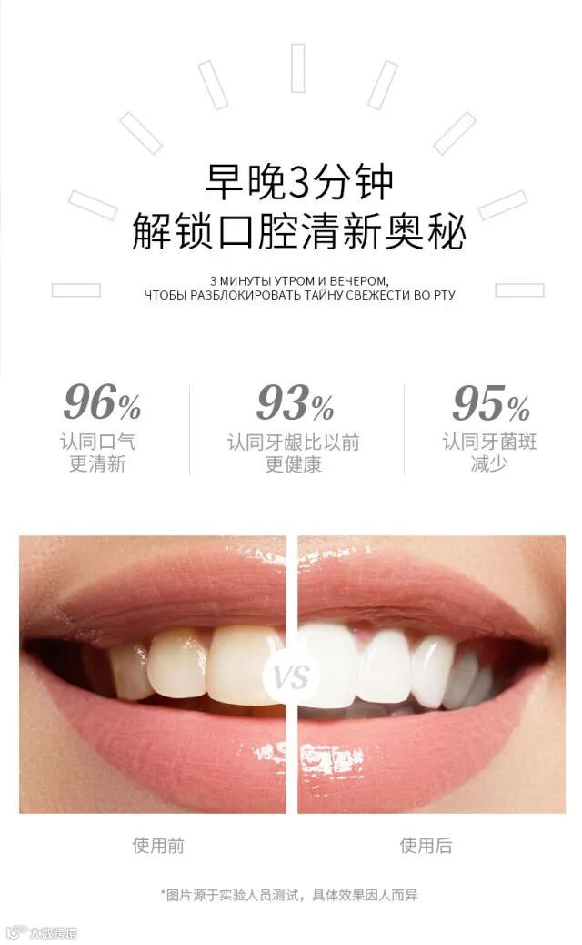 [功效]:清新口气、防止蛀牙、保护牙釉质、同时有效减轻牙齿问题、强健牙齿、营养牙龈、温和清洁口腔