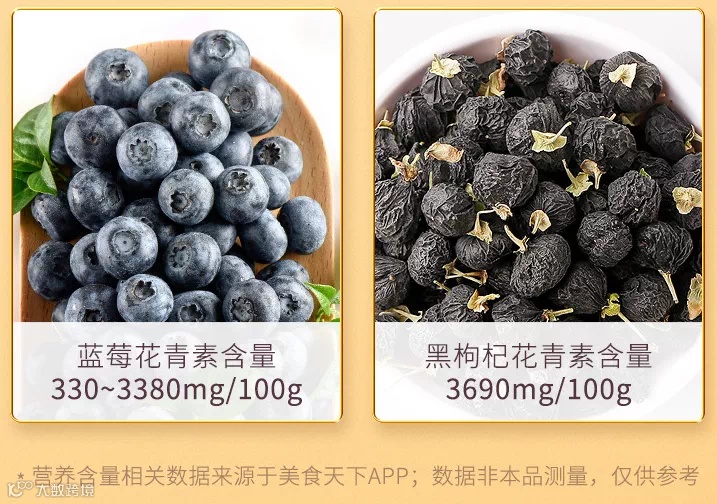 而黑枸杞里的花青素高达3690mg/100g,可以说是花青素之王!