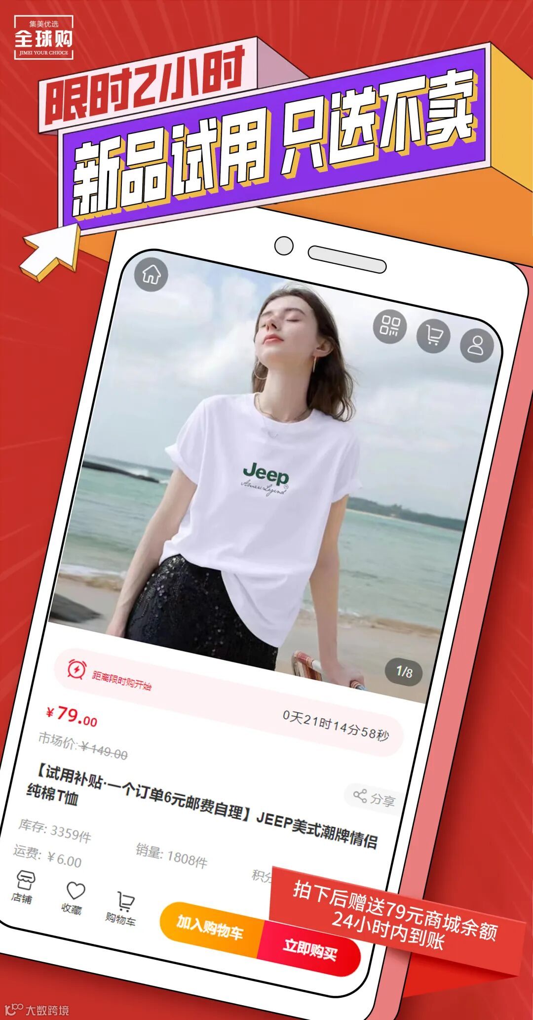 【试用补贴·一个订单6元邮费自理】JEEP美式潮牌情侣纯棉T恤