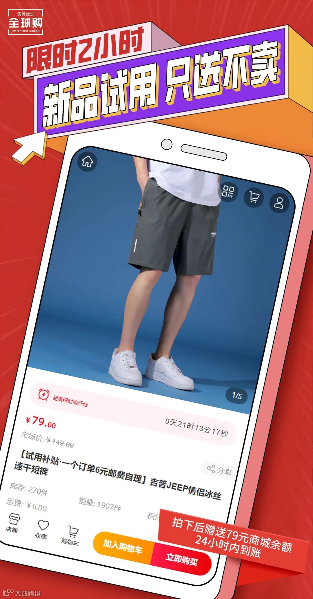 【试用补贴·一个订单6元邮费自理】吉普JEEP情侣冰丝速干短裤