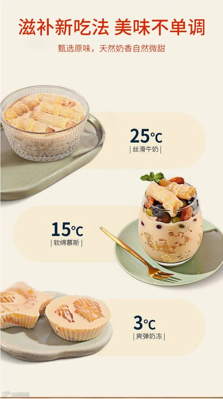 配料只有,牛奶、花胶、冰糖、燕窝、银耳