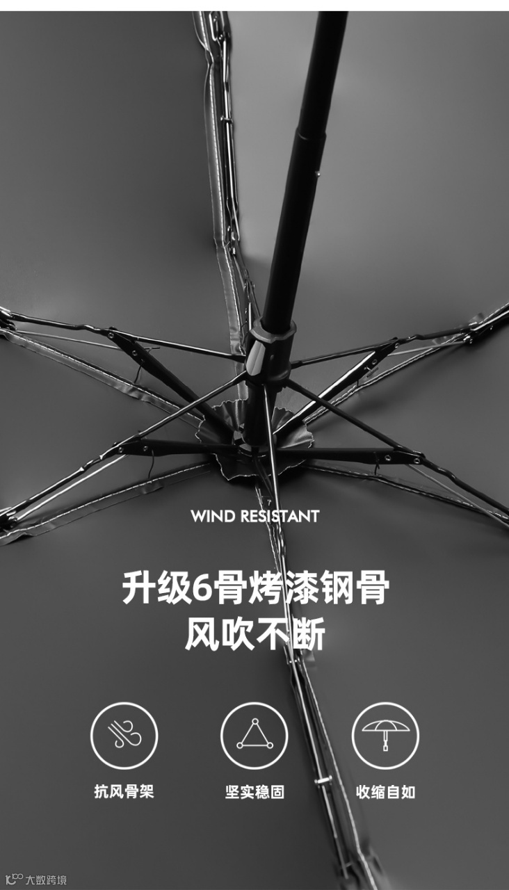 【材 质】伞面:高密钛金布; 伞架材质:烤漆钢骨; 伞柄材质:ABS;