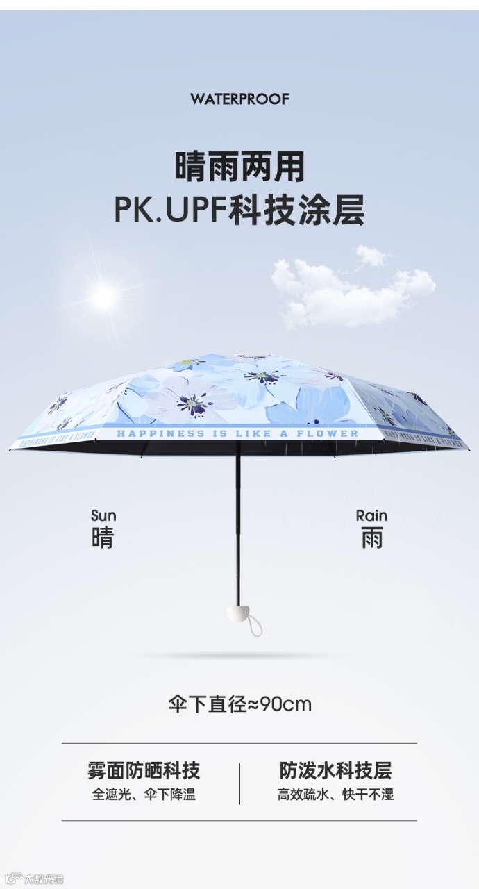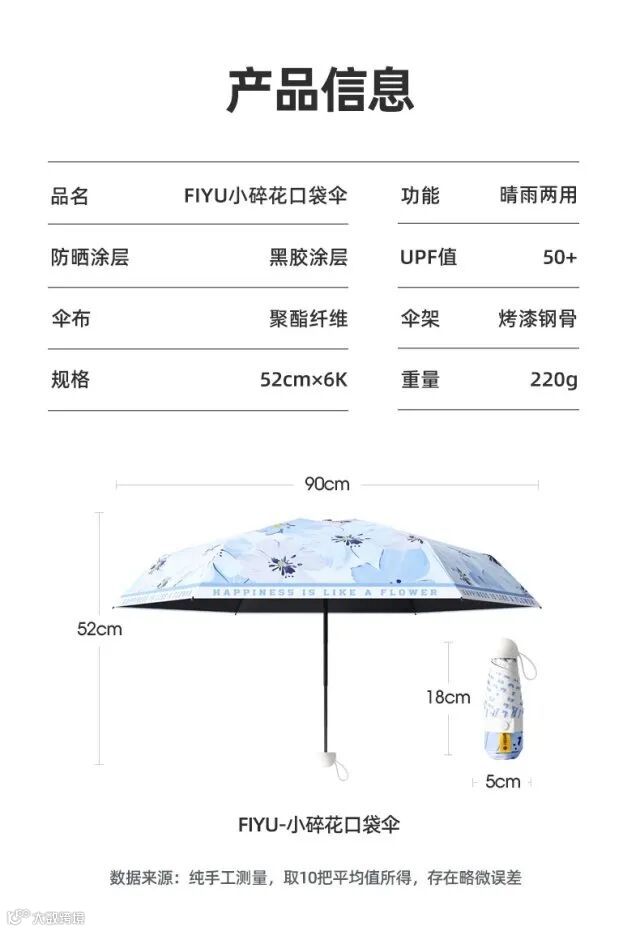 【尺 寸】伞面直径90cm;折叠尺寸18cm;重量255g