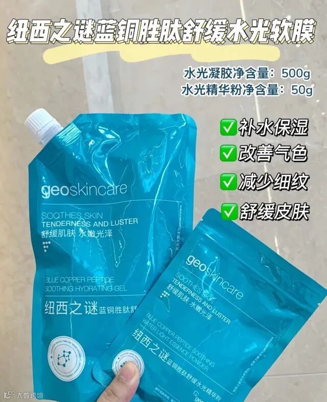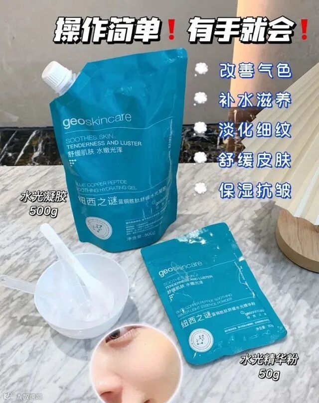 1.蓝铜胜肽舒缓水光凝胶500g/蓝铜胜肽舒缓水光精华粉50g
