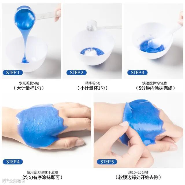 500g的凝胶软膜和50g的精华粉,撕下来过后皮肤水润有光泽。夏天冰冰凉凉效果又好的凝胶软膜很难让人拒绝!凝胶软膜一般用在管理项目的第二次底膜,用于收细毛孔和进一步改善皮肤问题。