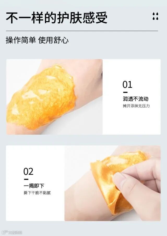 软膜贴合度非常好,不会像其他面膜那样往下滴水 ,敷久了也不会干。