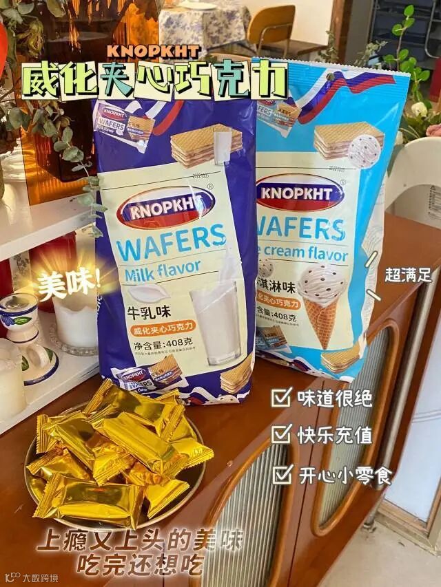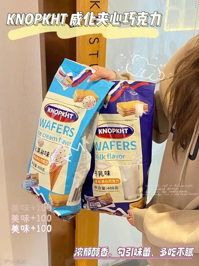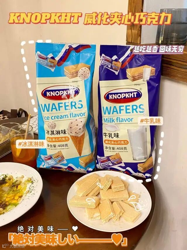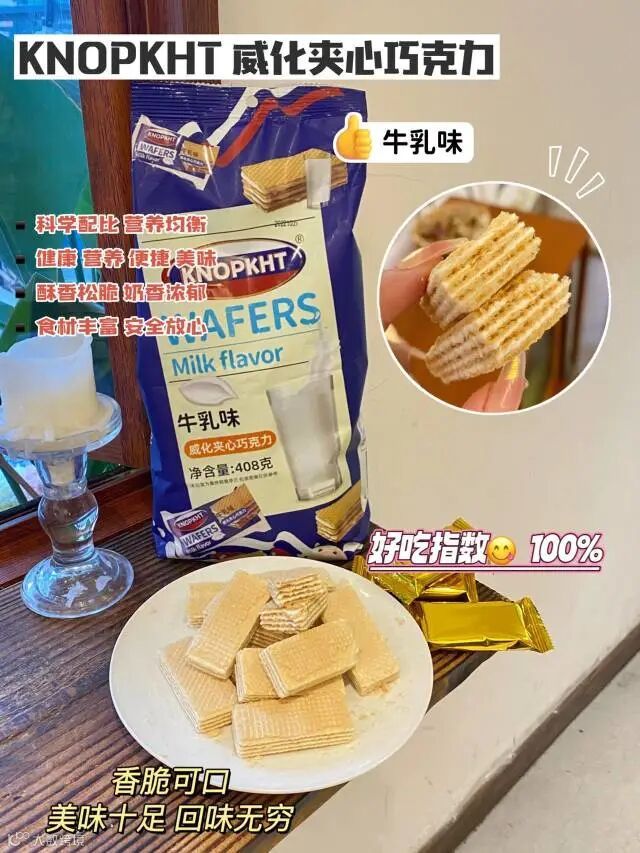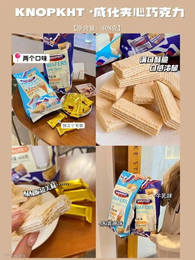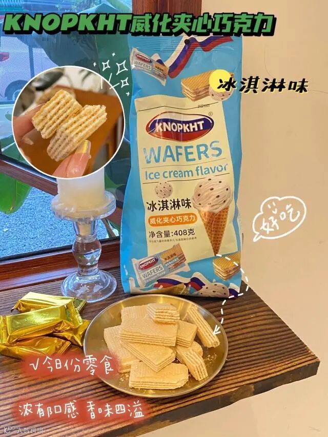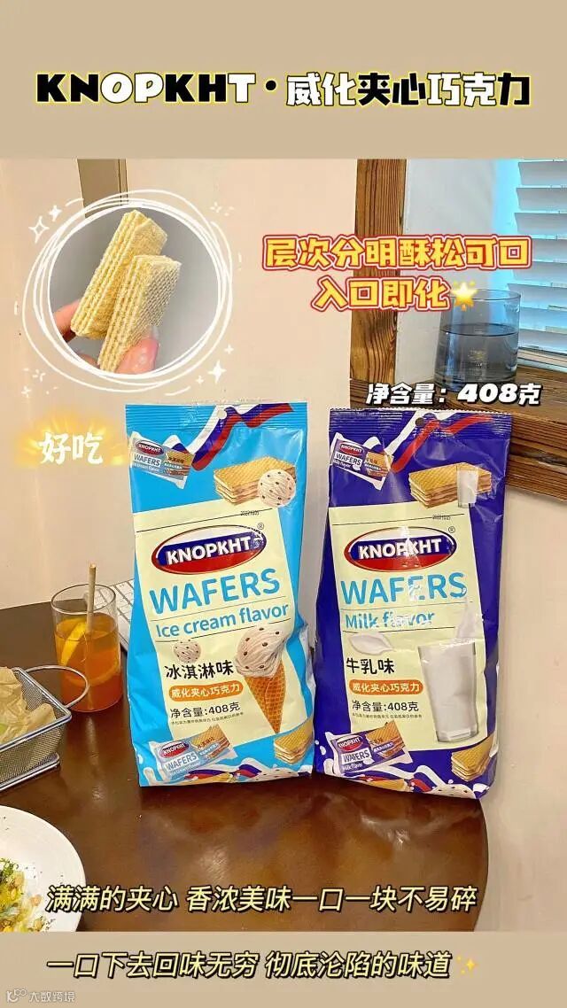 【粉丝群补贴】KNOPKHT·威化夹心巧克力408g/袋 冰淇淋味、牛乳味 原价:39元 粉丝群补贴价:19.9元