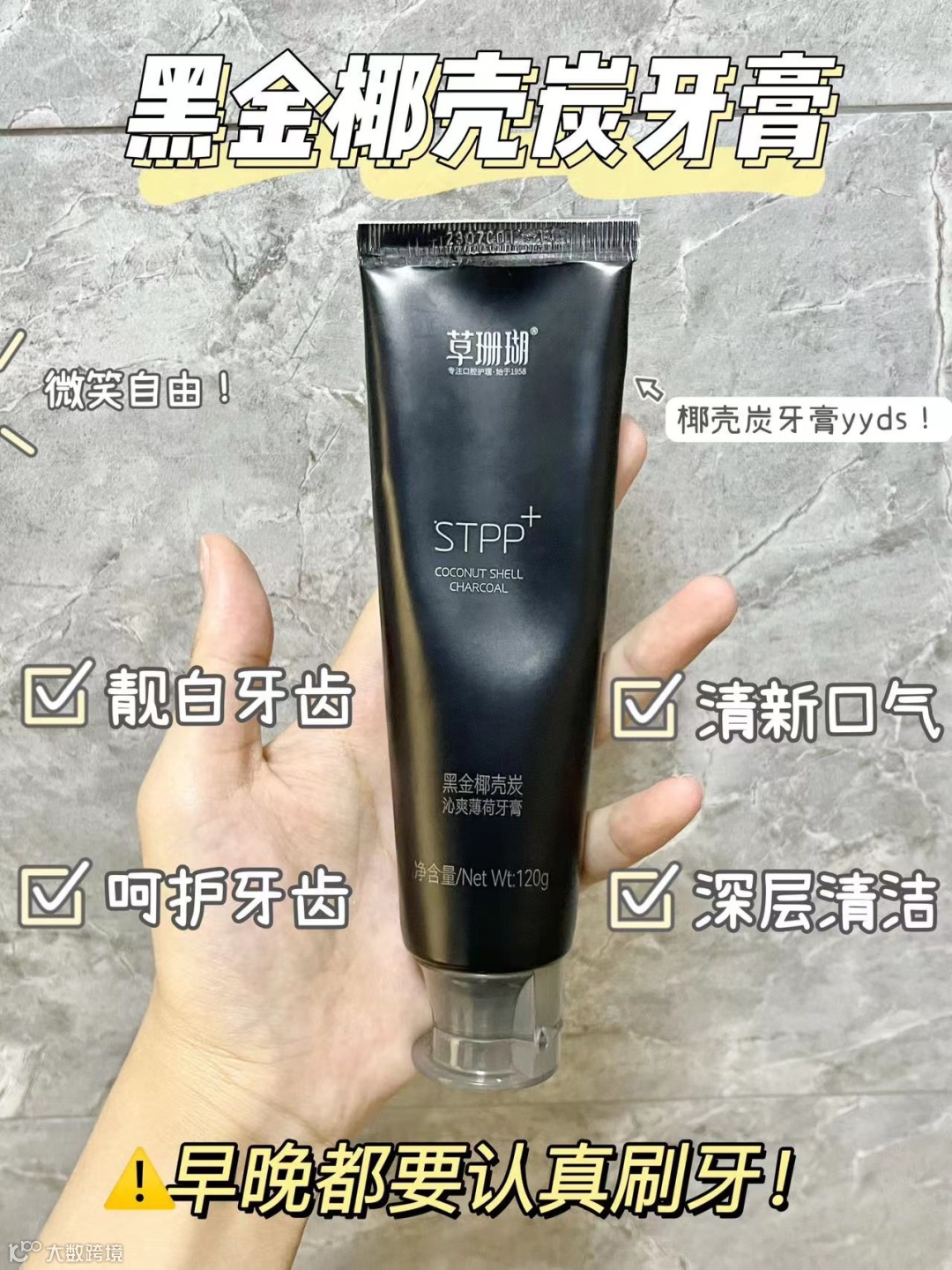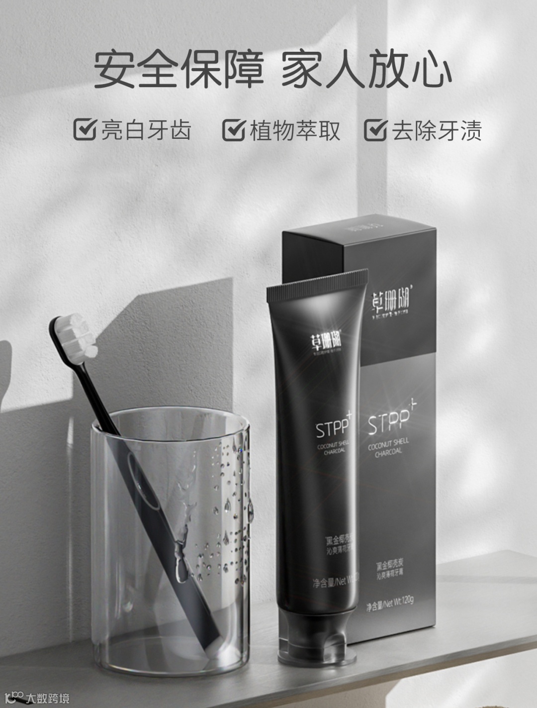 黑金椰壳炭 有效去渍 亮白防蛀牙