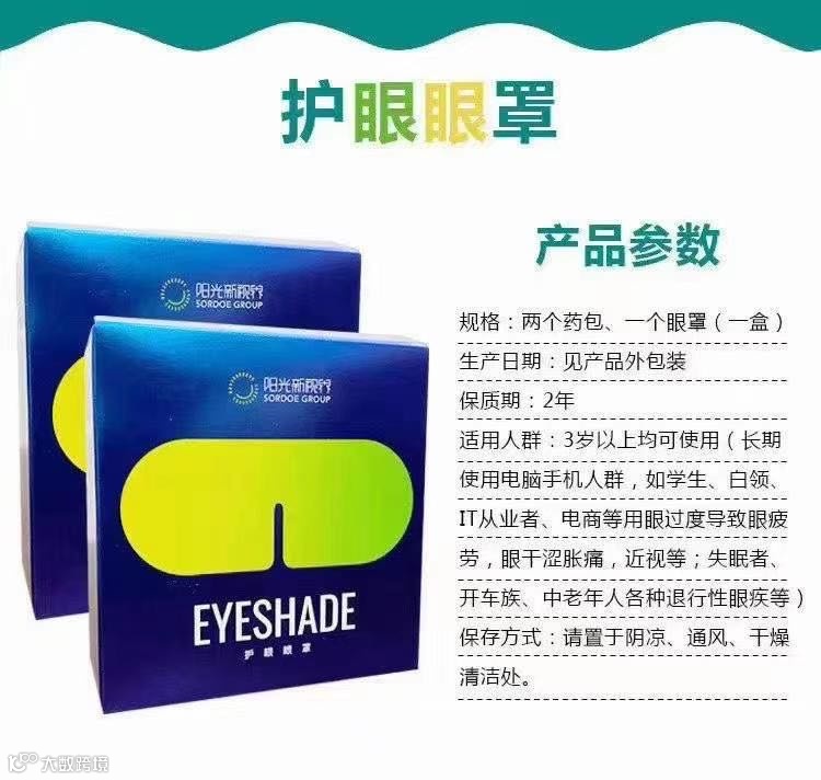 阳光怡然护眼眼罩功能:改善眼部微循环,活血化瘀,疏通眼部经络,排毒明目。改善眼干、涩、痒、酸、胀、疼、痛等,改善眼部红血丝、黑眼圈、眼袋、眼白发黄、眼底充血等症状改善视疲劳,视物不清,视力下降等现象,长期坚持使用,可以改善多种疾病。是互联网时代,人们学习,生活,工作必备护眼佳品!