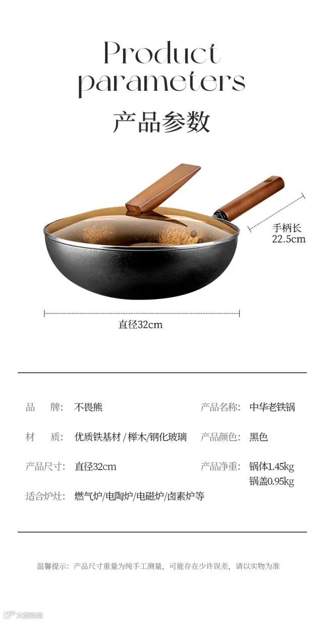 【口碑好物推荐】不畏熊中华老铁锅32cm带盖