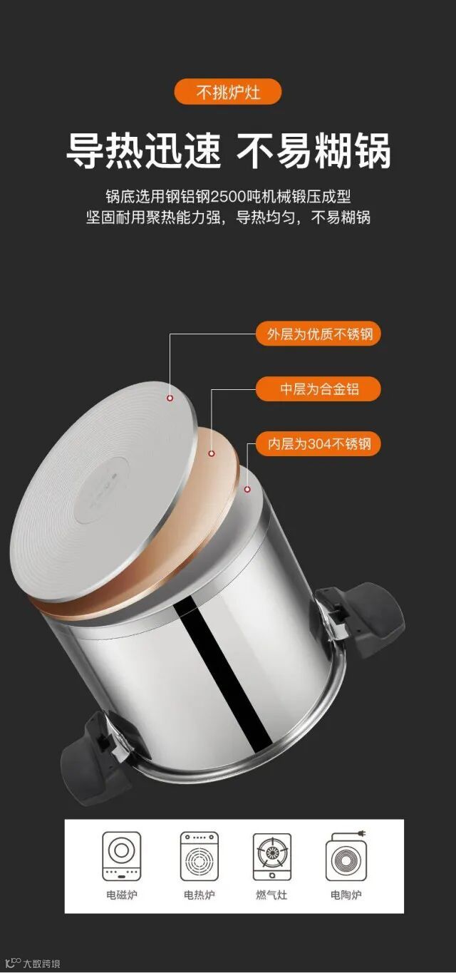 适用炉灶:电磁炉、电热炉、燃气灶、电陶炉等