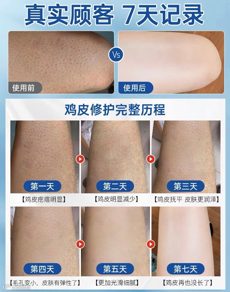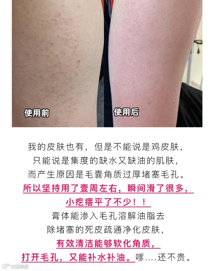 去鸡皮疙瘩,肌肤变光滑 补水嫩白 能促进细胞更新 恢复细胞新陈代谢还你光滑肌肤