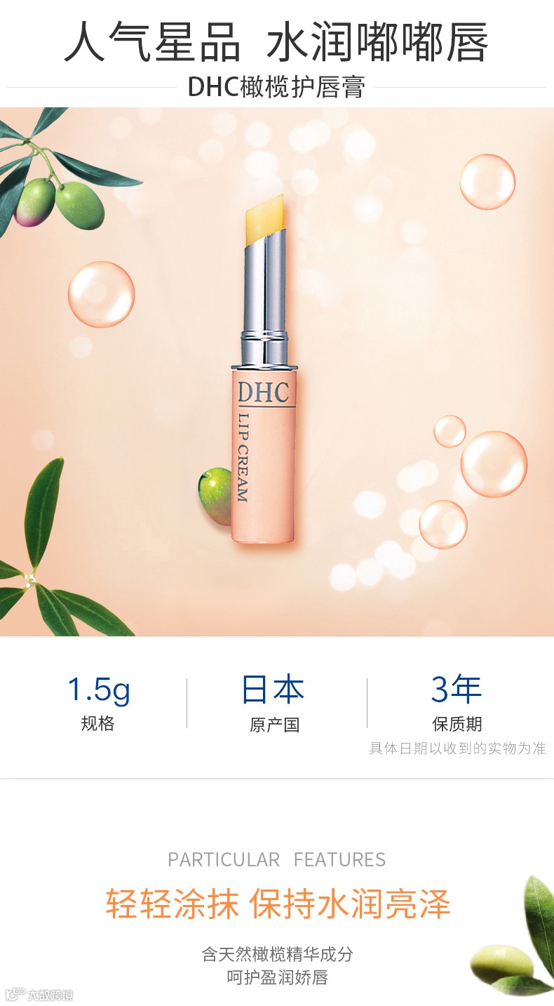 日本DHC天然橄榄润唇膏1.5g* 2支 保湿滋润无色