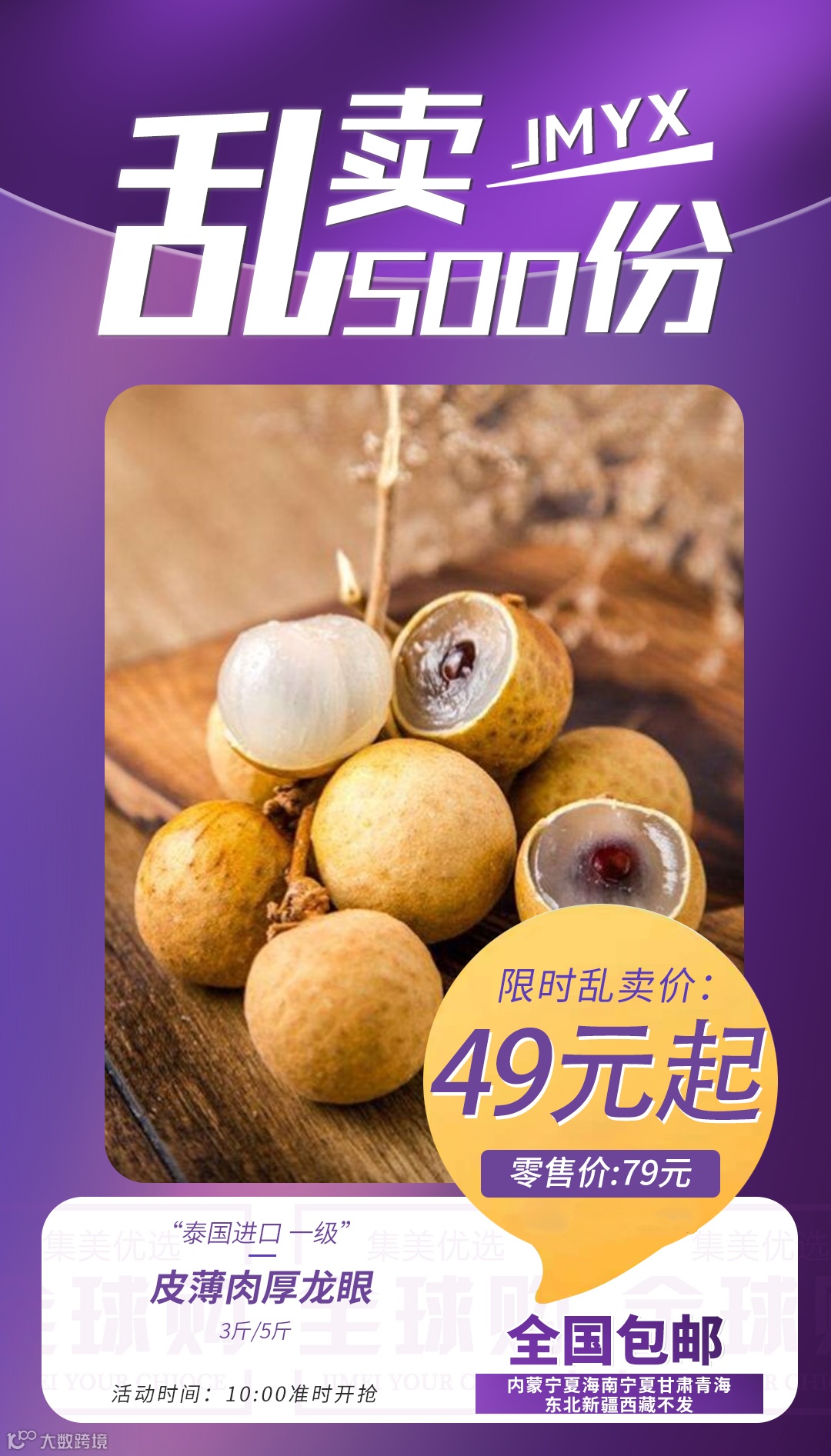 【乱卖500份】泰国进口(一级)皮薄肉厚龙眼 3斤/5斤 原价:79元 粉丝群补贴价:49元起