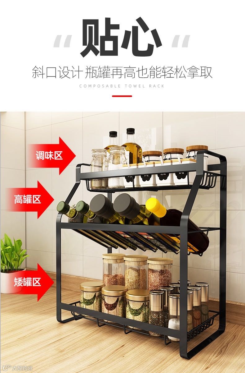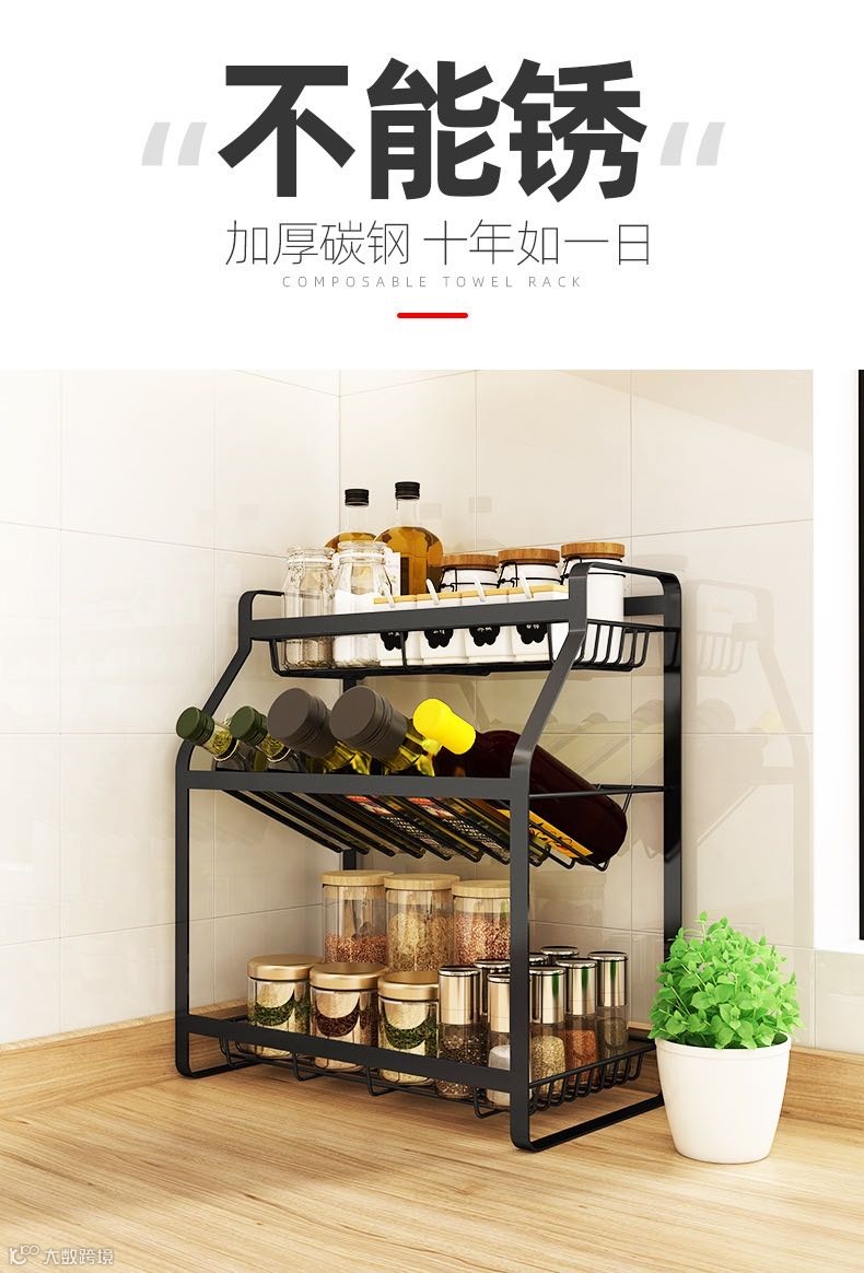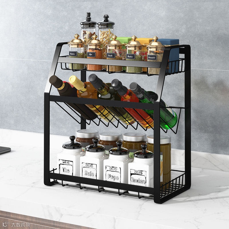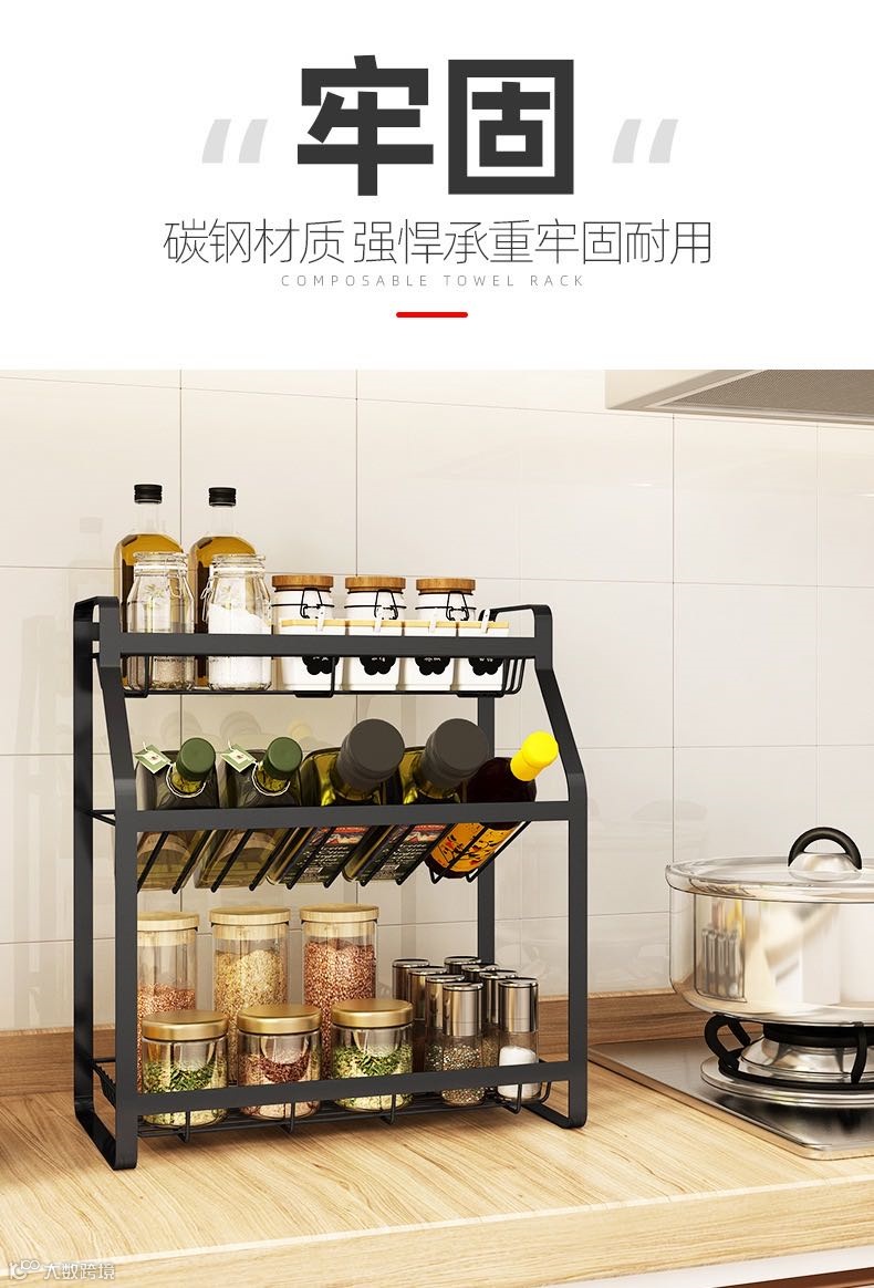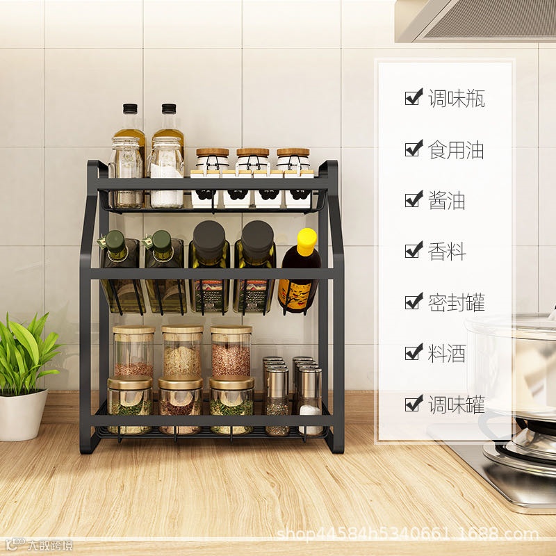 厨房调料置物架黑台面壁挂多层家用油盐酱醋瓶佐料调味品收纳架子
