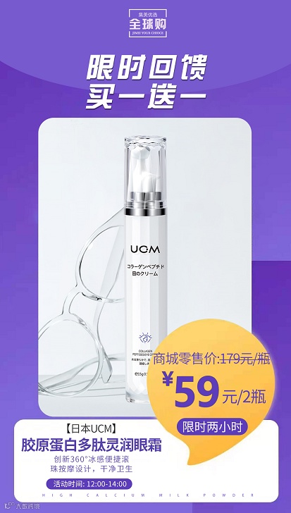 UCM品牌方发福利啦??价格美到让人惊艳??这个眼霜不陌生吧,最近火爆全网!熬夜眼霜销冠全网累计爆卖"2600000"支的 UCM胶原蛋白多肽灵润眼霜