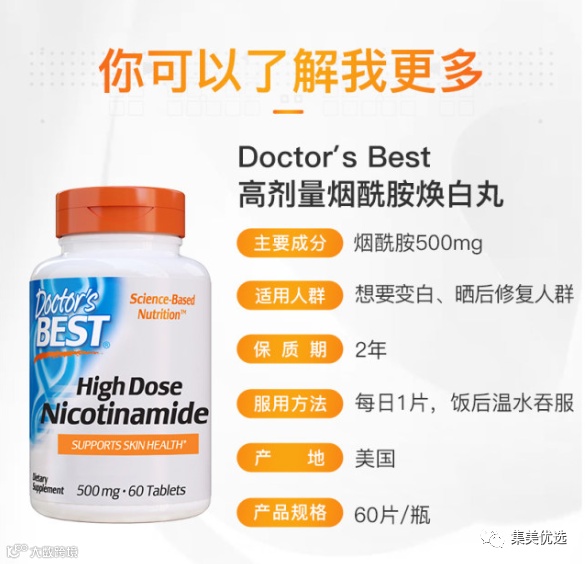 今天要给大家推荐的是“可以吃的烟酰胺”—— 高剂量烟酰胺焕白丸(维生素B3)500mg!助力全身美白!