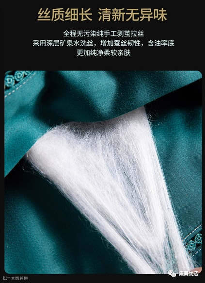 蚕丝纤维可以拉长至1100m的长纤维,因此他不会产生满屋子乱飘的短绒,对于敏感的呼吸道非常友好。