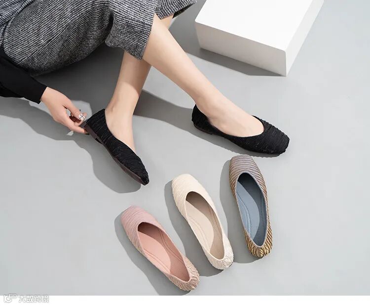 跟普通单鞋不一样的是,它整体搭配褶皱纹理,给予了一种特别的高级感,别致又吸引人眼球~