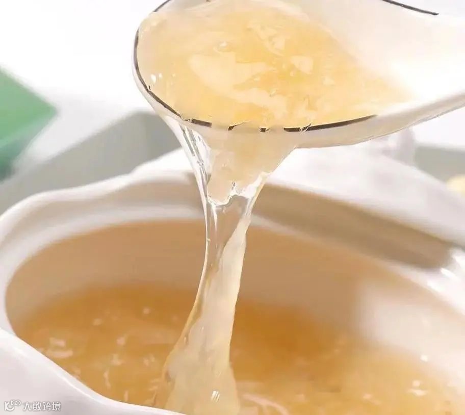 用勺子轻轻舀起,会有粘稠的拉丝。