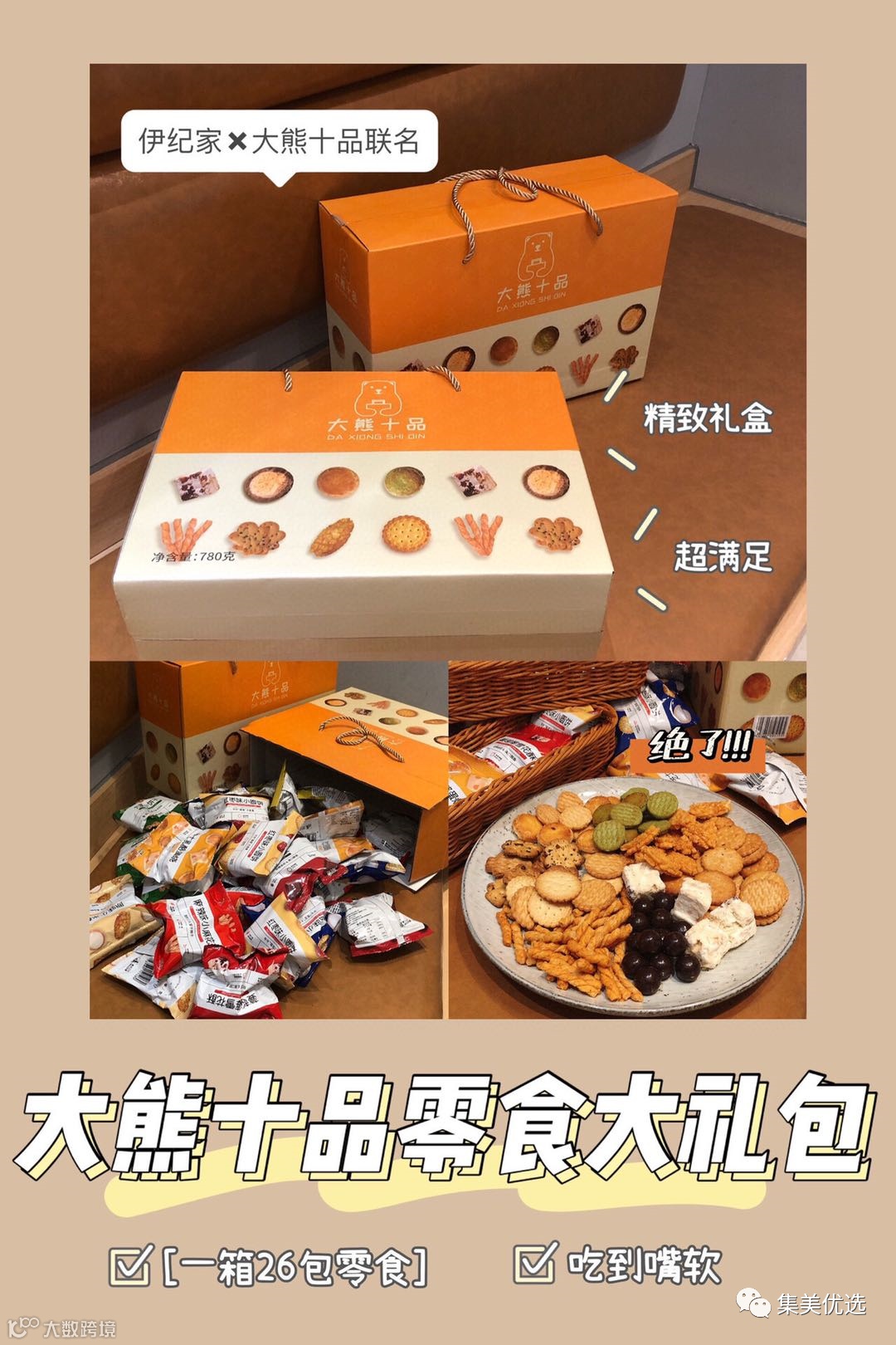 【大牌团购】大熊十品零食大礼包网红吃货零食礼盒 原价:79元 VIP /黑卡M1会员 福利补贴价:39.9元 精致礼盒 26包 爆款零食 吃到嘴软