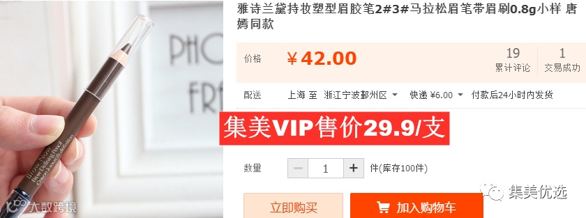 【限时秒杀】雅诗兰黛 持妆塑型眉胶笔小样 3# 唐嫣同款 原价:49元 VIP /黑卡M1会员 福利补贴价:29.9元 雅诗兰黛作为美妆界的大佬,相信它的品质与实力也不用我多说了吧。