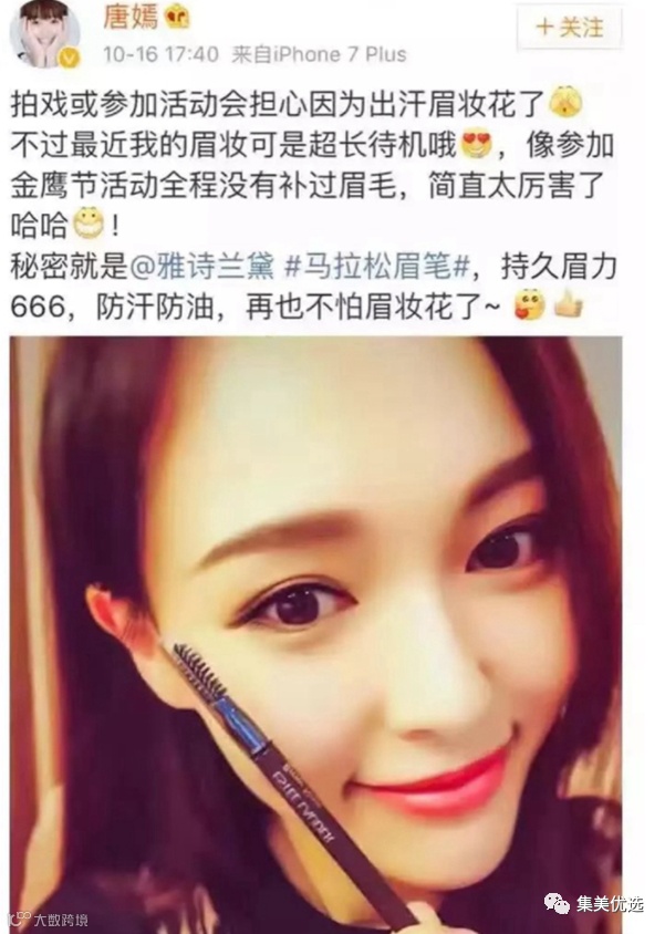 金鹰女神唐嫣曾经在参加金鹰节活动时也在微博上推荐过这款眉笔。