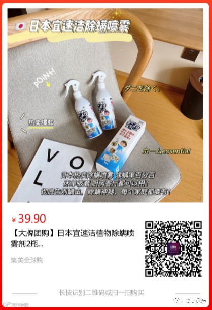 【大牌团购】日本宜速洁植物除螨喷雾剂 2瓶 原价:49元 大牌团购价:39.9元