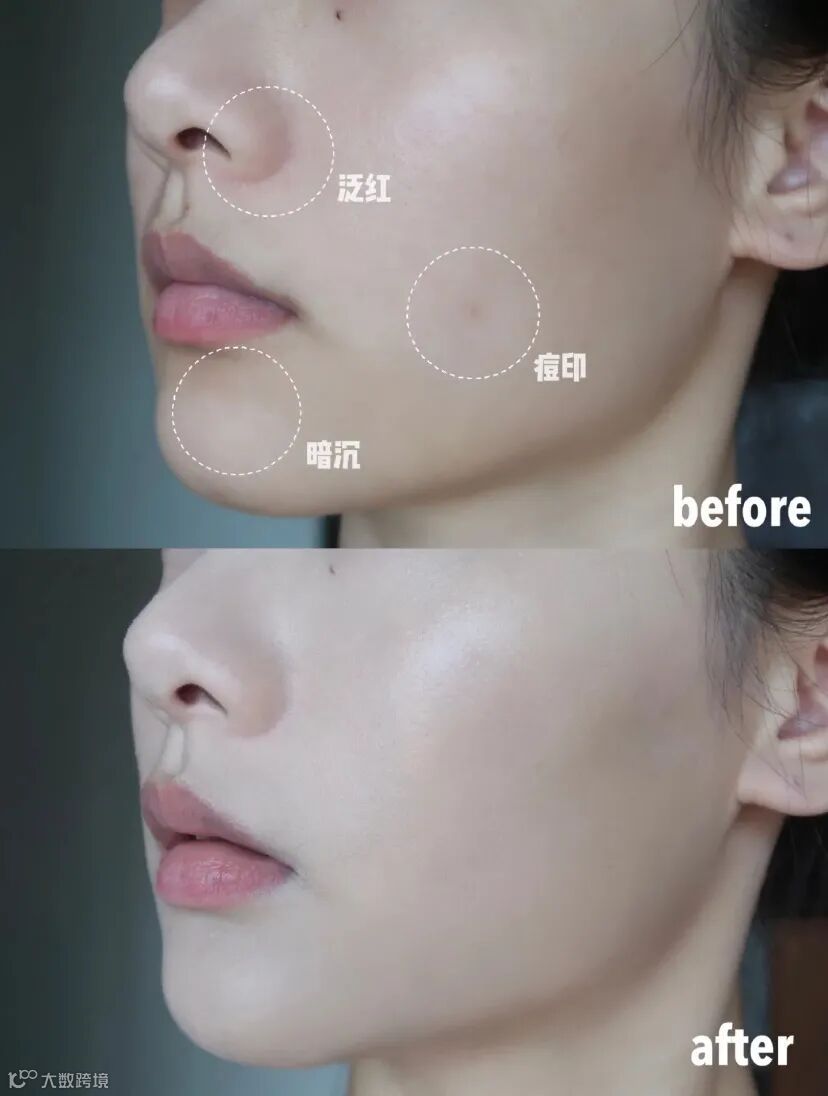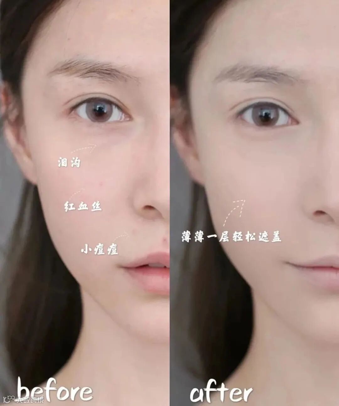 如果有红血丝毛孔痘印拍一层可以遮盖90%
