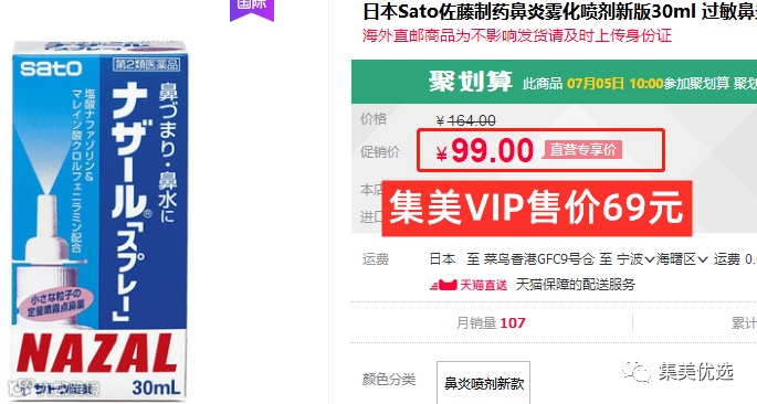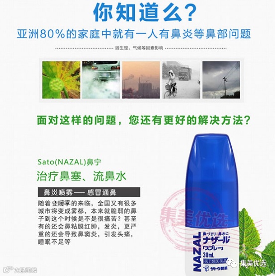 【大牌团购】日本Sato佐藤NAZAL鼻炎喷剂30ml/1支 原价:109元 VIP /黑卡M1会员 福利补贴价:69元 不少鼻炎患者每当到了换季或者是天气较冷的季节,就会出现鼻涕增多以及喷嚏不断的情况。很少有一款药物能够缓解过敏性鼻炎和慢性鼻炎。