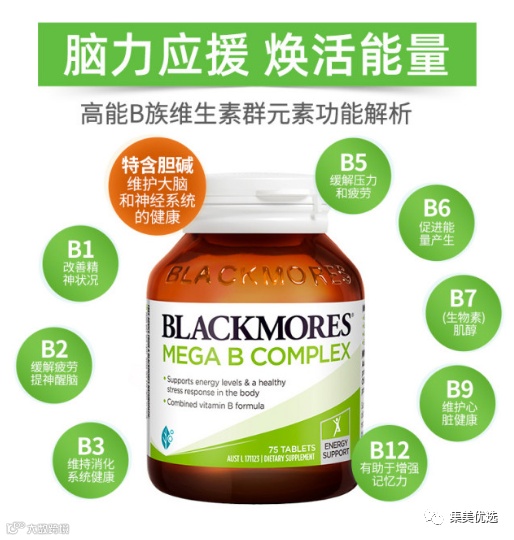 【大牌团购】澳洲Blackmores高能复合维生素B Mega VB族缓解压力疲劳睡眠75粒 原价:209元 VIP /黑卡M1会员 福利补贴价:109元 澳佳宝高能维生素B族,每天一粒有效减轻焦虑,提神醒脑,预防精神疲劳。长期口腔溃疡的伙伴们记得补充维生素B了。