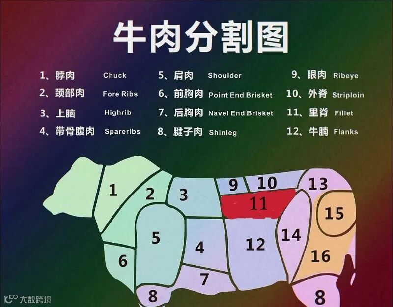 牛里脊可以说是“贵族部位肉”,一头牛只有一条,所以比较珍贵。而里脊还要分大里脊和小里脊。