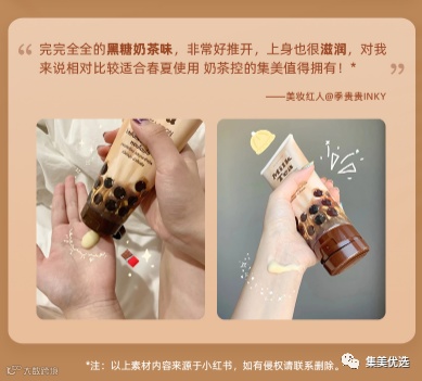 牛奶香与醇厚红茶交织,香味甜软悠长,乳液质地清爽不油腻,保湿力强,包装跟奶茶比较,超级逼真,看到更想喝奶茶了,哈哈!