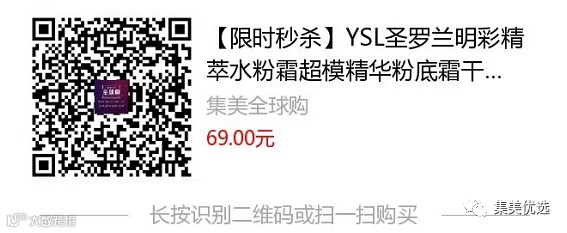 【限时秒杀】YSL圣罗兰明彩精萃水粉霜 10ml 原价:99元 VIP /黑卡M1会员 福利补贴价:69元 适合冬天用的滋润款粉霜,略带花香味的高级粉香,上脸就很有幸福感。粉质细腻、丝滑也很轻盈。