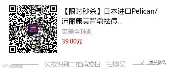 【限时秒杀】日本进口 Pelican/沛丽康 美背皂祛痘粉刺皂135g 原价:68元 VIP /黑卡M1会员 福利补贴价:39元 后背长痘痘的原因很单纯——背部是人的视线盲区,平常洗澡很难彻底的清洁背部。闷热的天气会导致肌肤皮脂分泌旺盛,加上汗水、污垢长时间堆积,背部痘痘区域肌肤炎症诱发的感染,还可能造成难以抚平的疤痕。