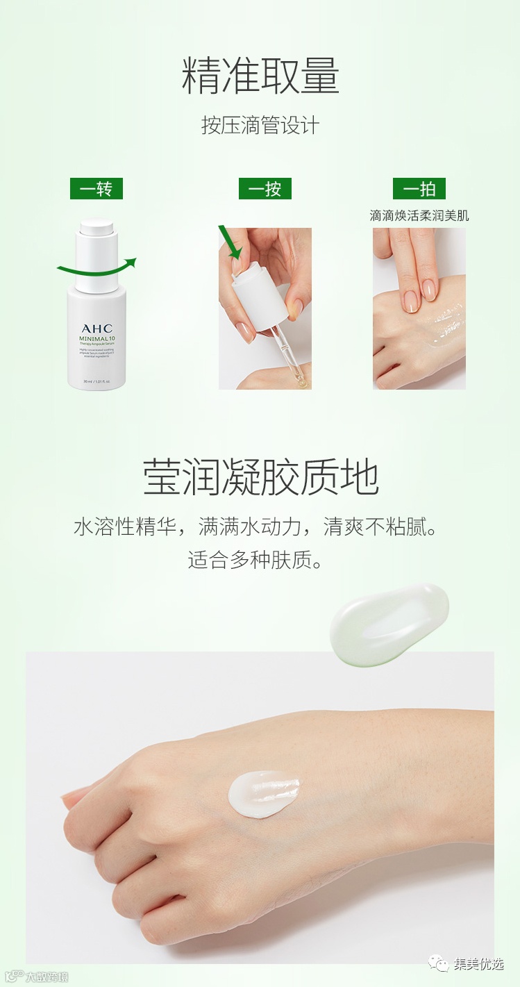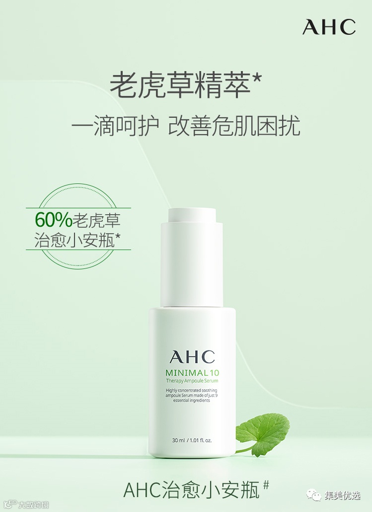 靠补水系列爆红的AHC家就新出了一条主打老虎草的宝藏线——Minimal 10老虎草系列,萃取科技确保了高浓度的老虎草也能被皮肤轻松吸收,而且继承了AHC在保湿锁水领域的能力。全线产品都秉持了精简的配方理念,而且温和不刺激,适用于所有肤质