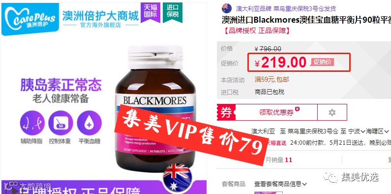 【大牌团购】澳洲Blackmores 澳佳宝血糖平衡片 90片/1瓶 原价:139元 VIP /黑卡M1会员 福利补贴价:79元 ![]()