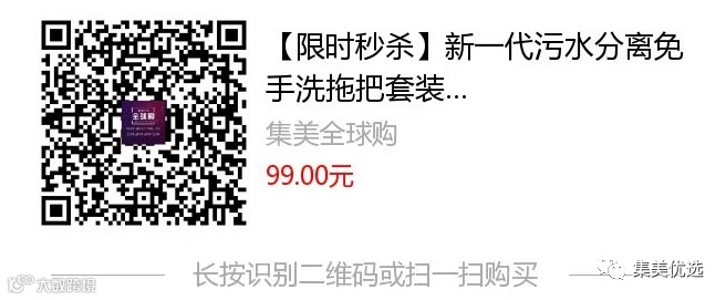 【限时秒杀】新一代污水分离免手洗拖把套装 原价:109元 VIP /黑卡M1会员 福利补贴价:89元 想干干净净地拖地,安心躺在干净的地上;大扫除后不狼狈,轻松不费力。 从今天开始,你也可以! 新一代污水分离免手洗拖把推荐给您,“做事超干净”: 它能将拖地使用的净水和清洗后的污水分离,清洗拖把时免手洗,干净得令您无从挑剔。