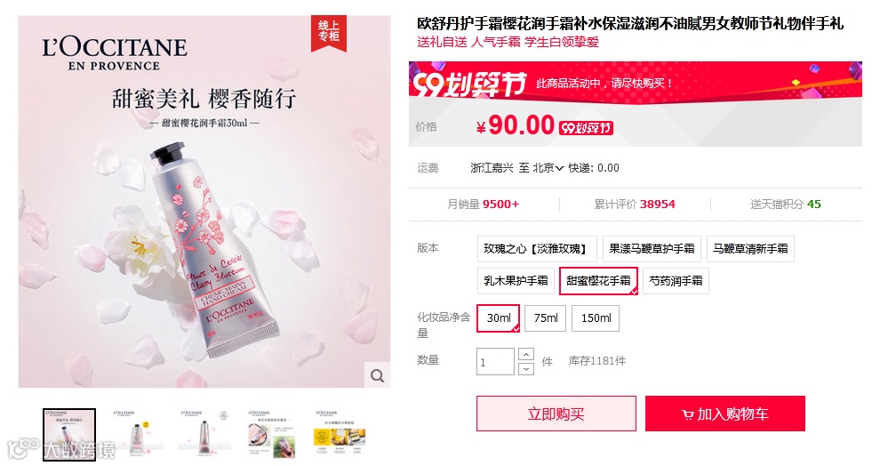 欧舒丹樱花护手霜