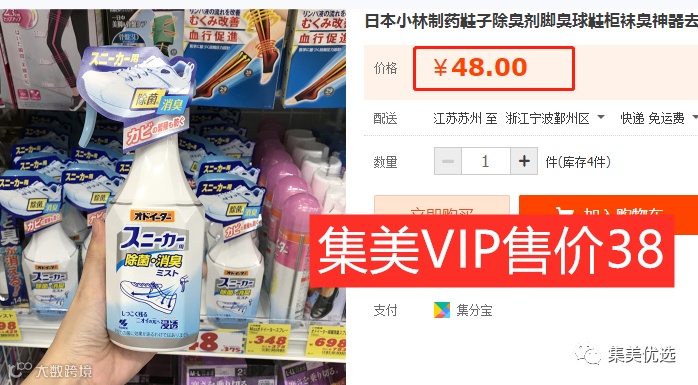 【限时秒杀】小林制药 运动鞋鞋子除臭除异味喷雾250ml 原价:59元 VIP /黑卡M1会员 福利补贴价:38元
