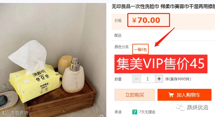 【大牌团购】无印良品 干湿两用洗脸巾 全棉6包(80抽/包) 原价:79元