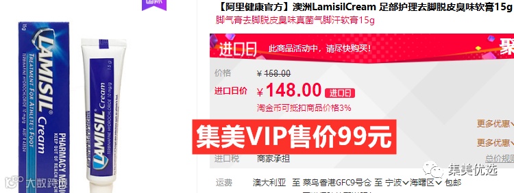 【大牌团购】澳洲Lamisilcream真菌足癣/脚癣/脚气膏/香港脚15g 原价:129元 VIP /黑卡M1会员 福利补贴价:99元
