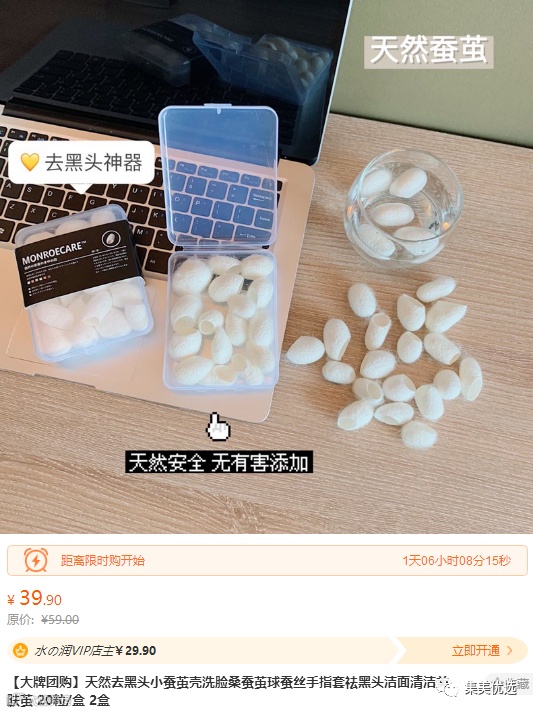 【大牌团购】天然去黑头小蚕茧壳洗脸桑蚕茧球蚕丝手指套祛黑头洁面清洁美肤茧 20粒/盒 2盒 原价:59元