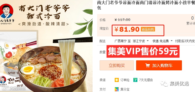 【大牌团购】南大门老爷爷韩国正宗风味东北大冷面韩式拌冷面520g*4包装 原价:89元 VIP /黑卡M1会员 福利补贴价:59元