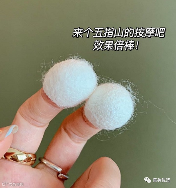 4.用食指套上蚕茧,在需要清洁的部位轻轻地进行按摩