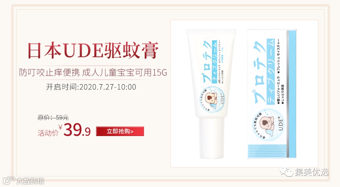 【大牌团购】日本UDE驱蚊膏防蚊虫叮咬温和止痒便携 成人儿童宝宝可用15g 原价:59元