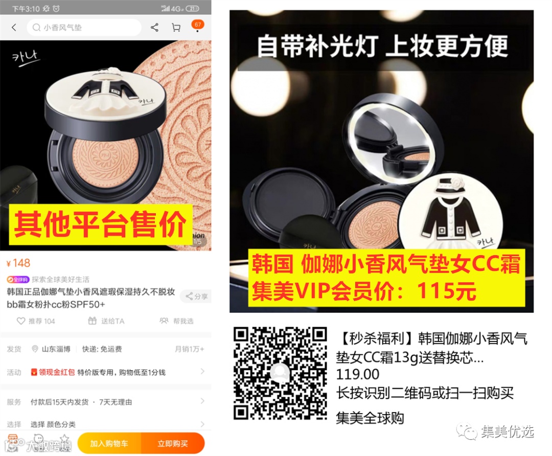 【限时秒杀】 韩国 伽娜小香风气垫女CC霜13g 送替换芯1枚团购价:119元 VIP /黑卡M1会员 福利补贴价:115元