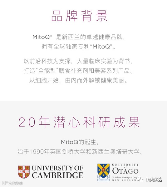【成 分】每剂量(两粒)含有效成分:MitoQ®分子10毫克