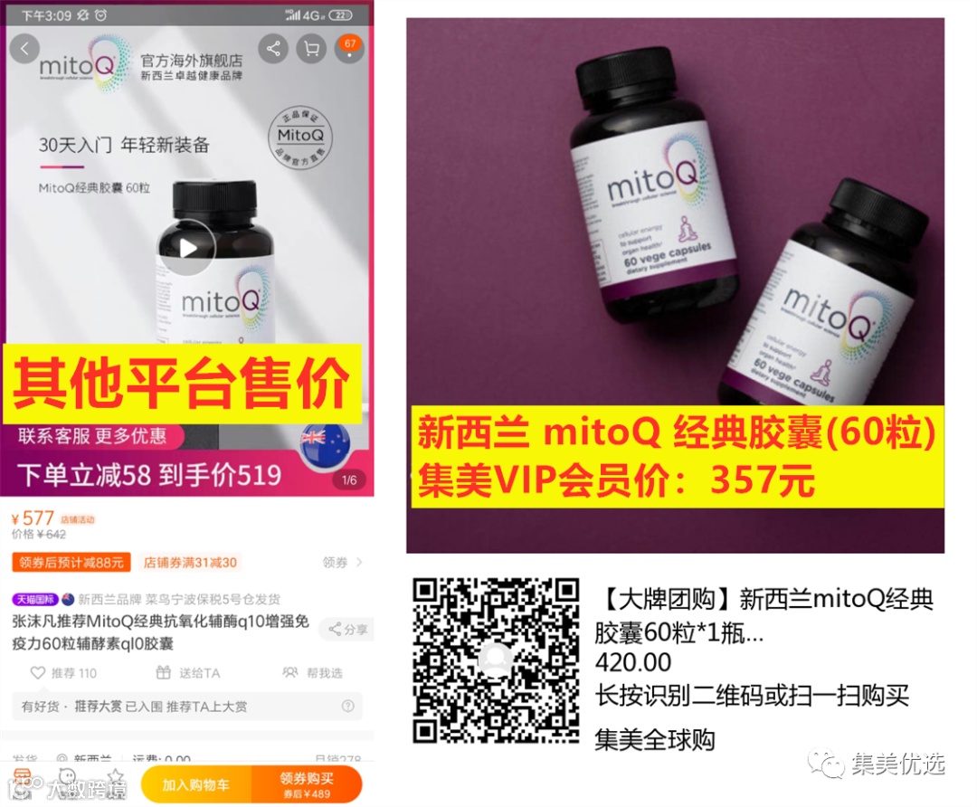 【大牌团购】 新西兰 mitoQ 经典胶囊(60粒)