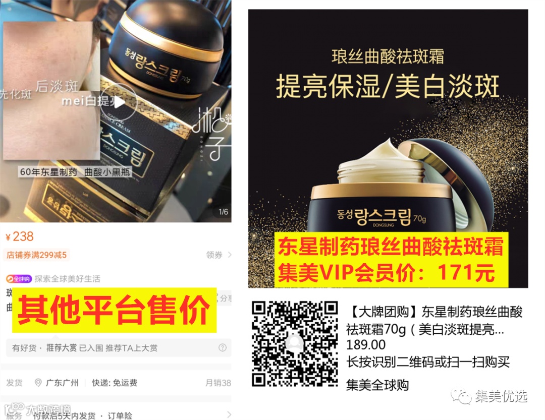 【大牌团购】东星制药琅丝曲酸祛斑霜70g(美白淡斑 提亮肤色 补水滋润) 团购价:189元 VIP /黑卡M1会员 福利补贴价:171元